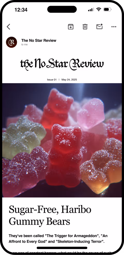 A glorious romp through the internet’s lowest ratings. A one-star review for the Grand Canyon being “too far away.” An irate Karen trapped at a subpar Hyatt in middle America. A comment-section war under Haribo Sugarless Gummi Bears. It’s the best of the worst of the internet’s reviews delivered to your inbox every week.